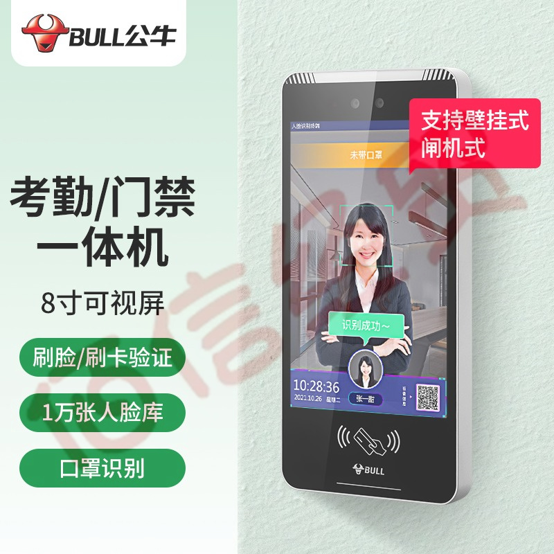 公牛(BULL) 人臉口罩識(shí)別門禁一體打卡門禁考勤機(jī) 企業(yè)別墅醫(yī)院商場餐廳學(xué)校單元樓門禁打卡機(jī) 8寸可視屏幕G081RLE 自營