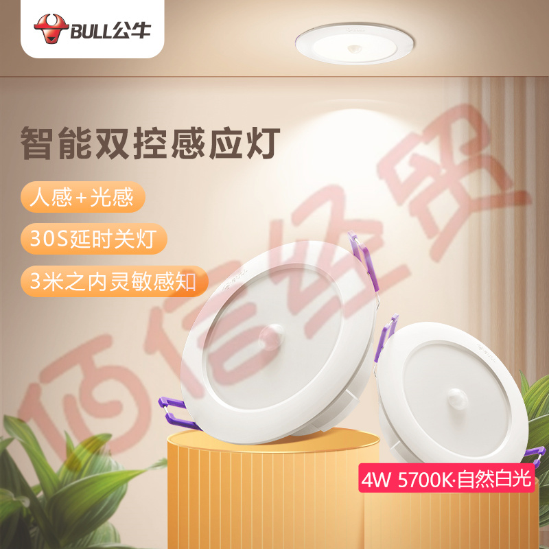 公牛感應(yīng)筒燈LED智能光控+人體感應(yīng)嵌入式天花燈走廊過(guò)道玄關(guān)MT-C004A-CS 4W3寸自然白光5700K/開(kāi)孔70-85mm 自營(yíng)