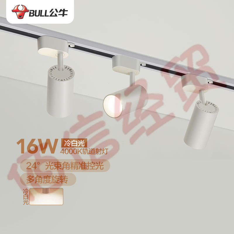 公牛(BULL)LED軌道射燈MH-C016A-AS櫥窗家居照明展覽展廳 典雅白16W 4000K 自營