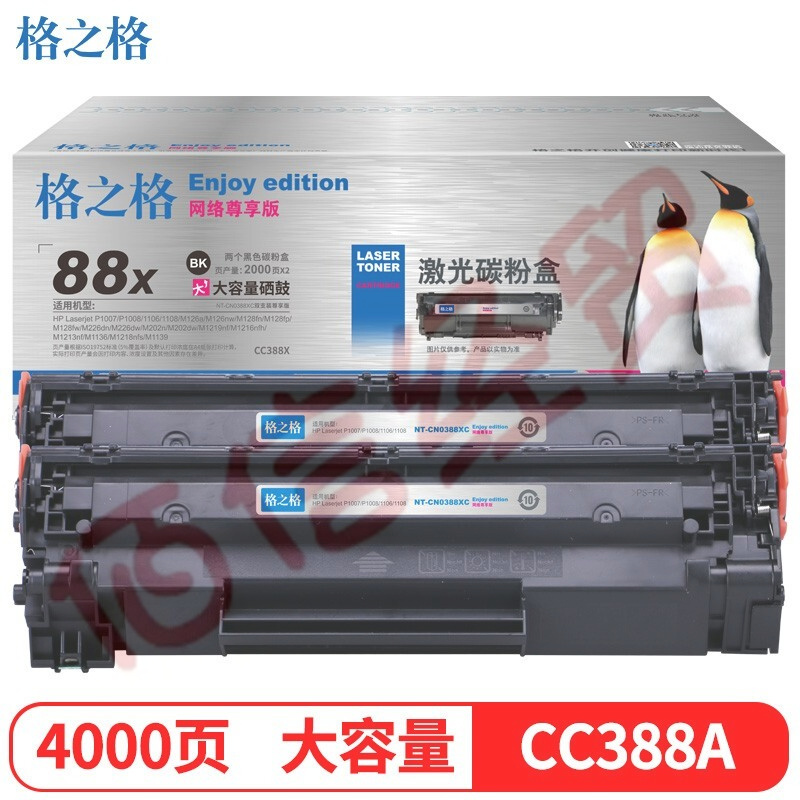 格之格NT-CN0388XC尊享版硒鼓2只裝CC388A適用hp388a 88a墨粉惠普m1136 P1108 p1106 m1216nfh m128fn墨盒# 自營
