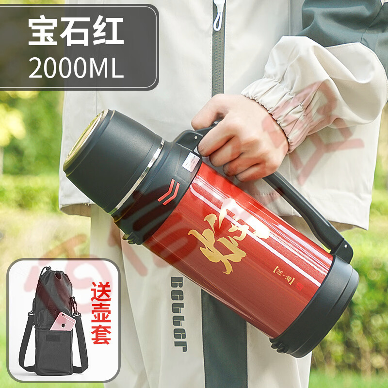 匡迪(DKADI)大容量304不銹鋼保溫壺旅行燜茶壺男女戶外保暖水壺車載家用暖瓶 寶石紅 2000ml 自營