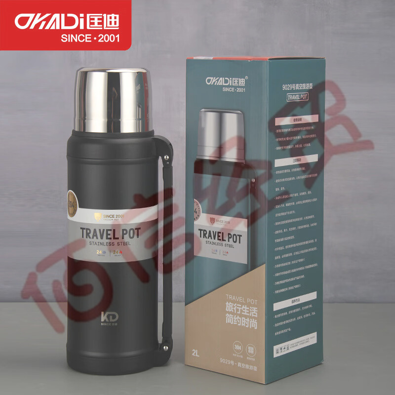 匡迪(DKADI) 新款匡迪不銹鋼保溫壺內(nèi)外304旅行壺戶外運動瓶手提大容量 紅色 2000ml 自營
