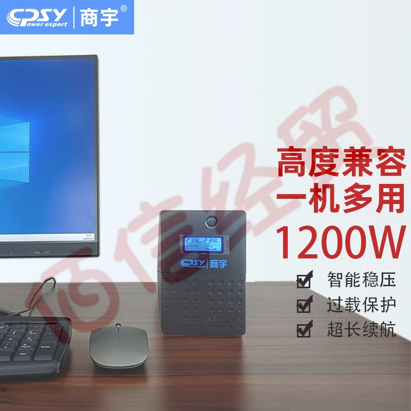 商宇(CPSY)S2000-LCD 斷電自動續(xù)航穩(wěn)壓防浪涌1200W不間斷電源智能靜音后備式UPS 自營