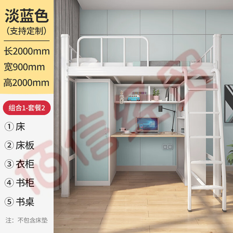 京中柜 上下鋪鐵床高低床學(xué)生宿舍雙層床員工寢室公寓成人鐵藝床 淡藍(lán)色長(zhǎng)2000_寬900_高2000mm