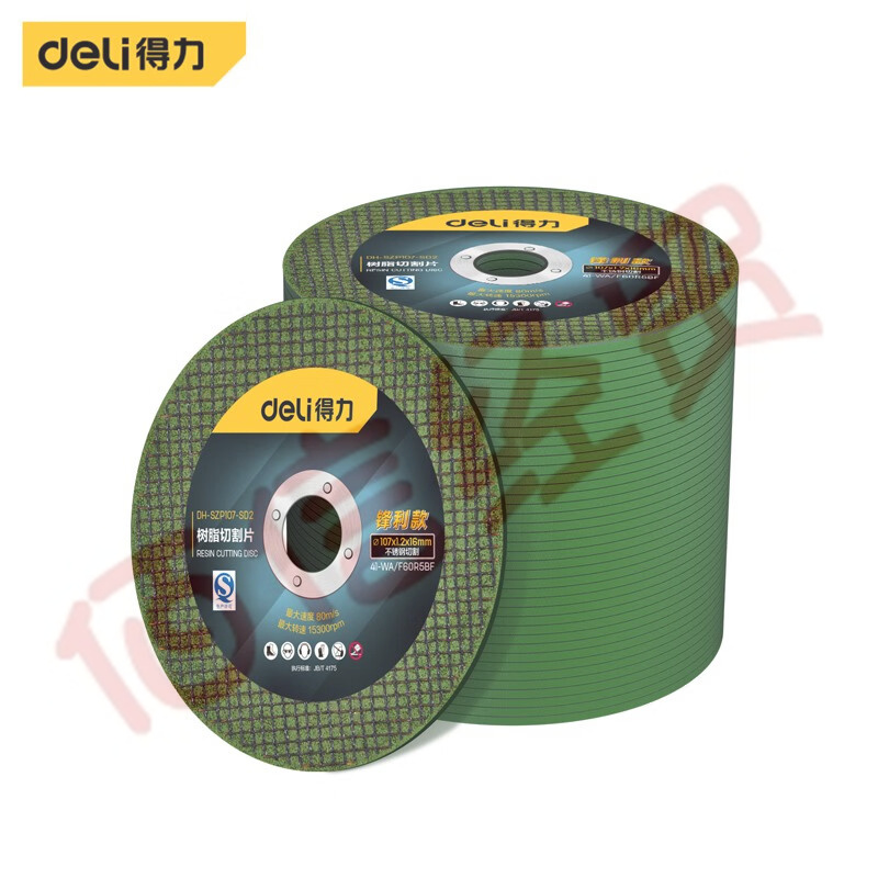 得力(deli)角磨機切割片100型樹脂砂輪小拋光片不銹鋼切割片金屬切割片加厚 綠色鋒利款107*1.2*16/50片裝 自營