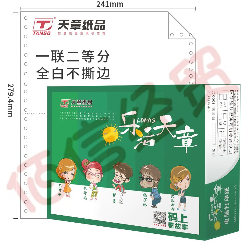 天章(TANGO)樂(lè)活天章 針式打印紙 一聯(lián)二等分不撕邊電腦打印紙 全白一聯(lián)打印紙(241-1-1/2 全白 1000頁(yè)/箱) 自營(yíng)