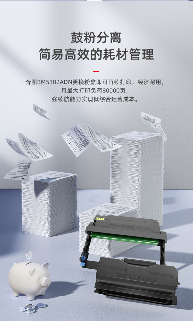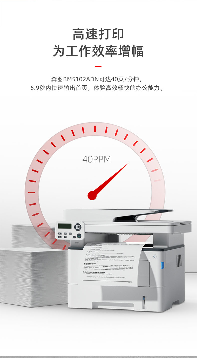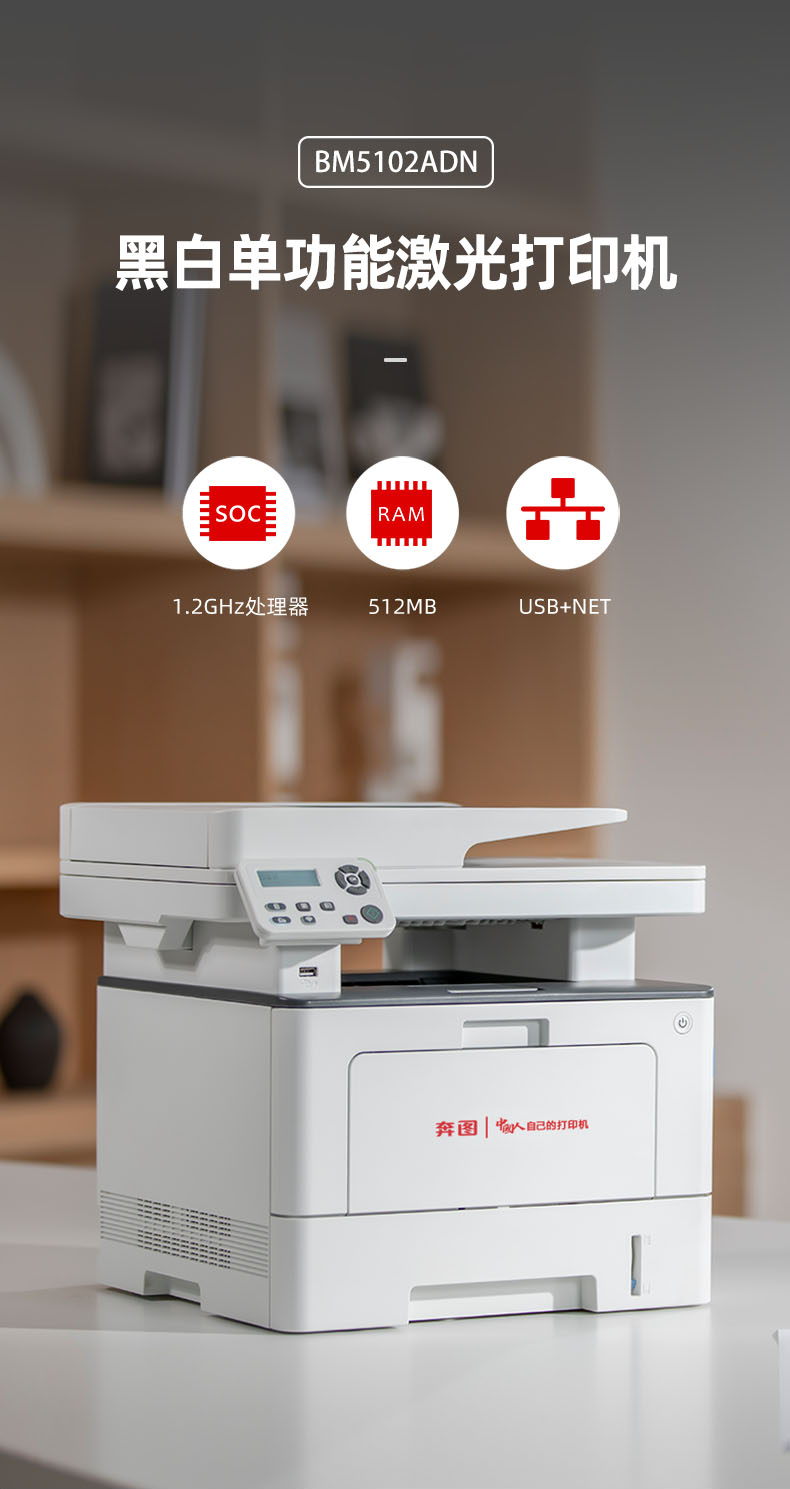 奔圖(PANTUM)BM5102ADN 黑白激光多功能一體機 自動雙面/60頁多功能進紙 自營