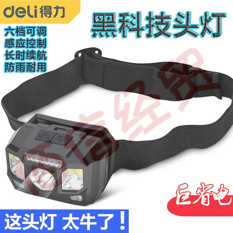 得力(deli)感應(yīng)式頭燈強(qiáng)光充電超亮遠(yuǎn)射可變焦頭戴式夜釣燈持久續(xù)航LED戶外家用迷你便攜小礦燈 感應(yīng)頭戴燈 DL5415 自營