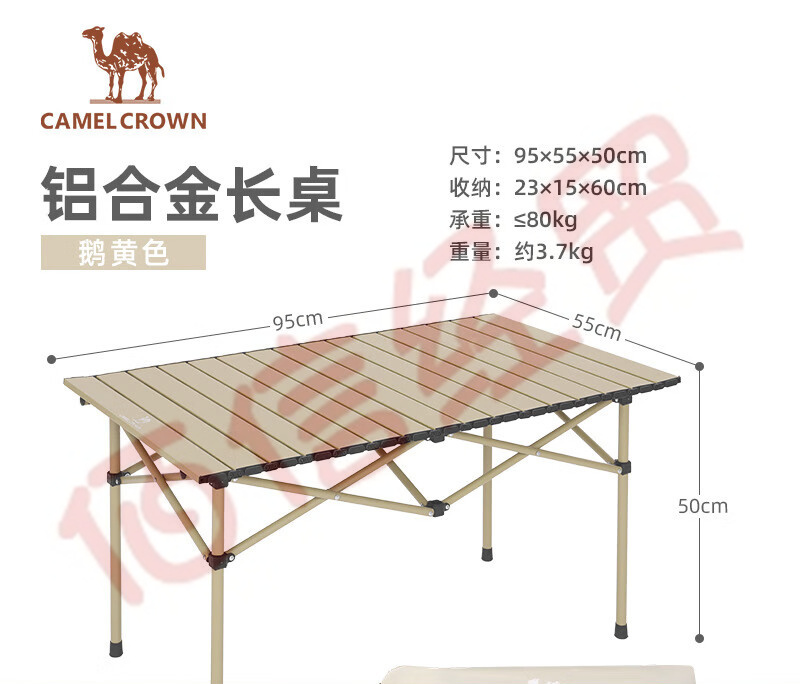 駱駝CAMELCROWN戶外便攜式折疊桌鋁合金野餐桌子公園家用長桌野炊裝備露營燒烤桌 S022,鵝黃色,鋁合金長桌 自營