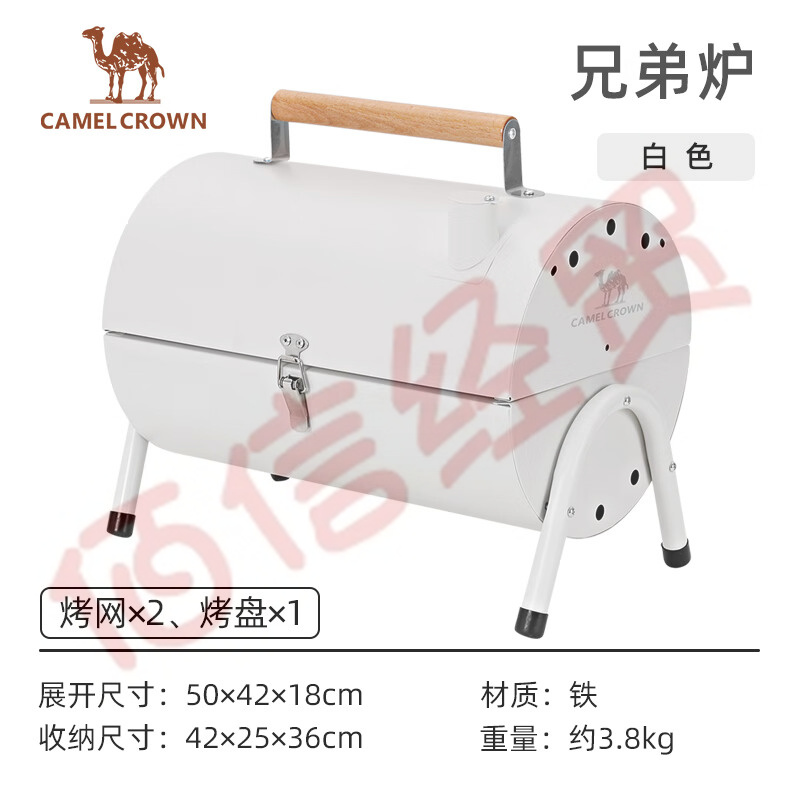 駱駝CAMELCROWN野炙燒烤爐戶外便攜烤肉圓形爐子家用可折疊手提木炭燒烤架子 2029,雙烤網(wǎng)+烤盤,白色,預售 自營