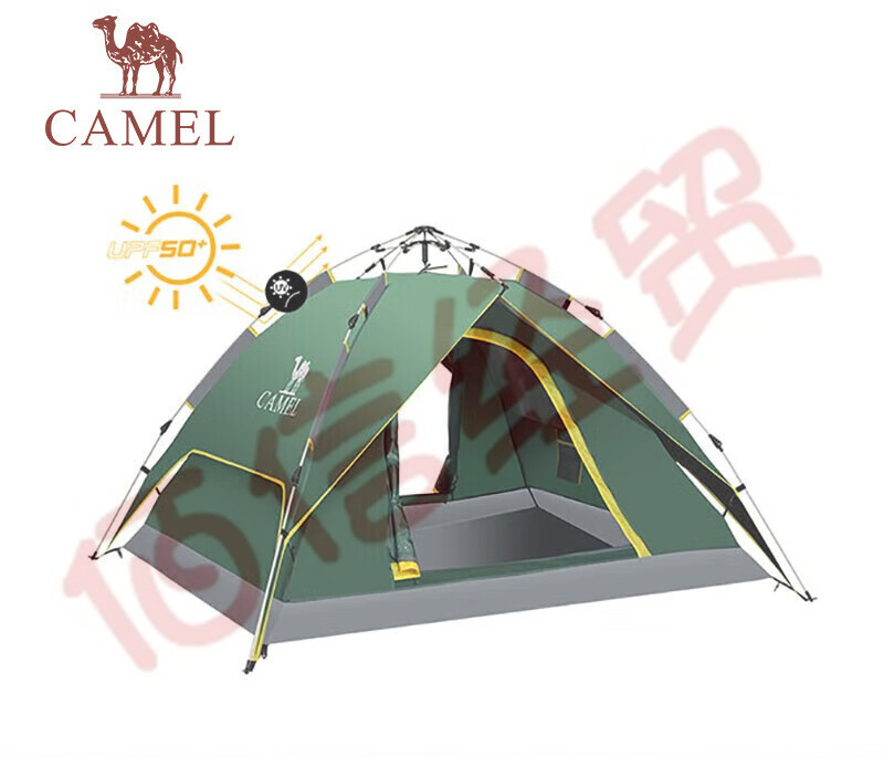 駱駝(CAMEL)戶外黑膠帳篷便攜式折疊全自動加厚野餐野營雙人防曬防雨 A1S3NA111-3,軍綠 自營