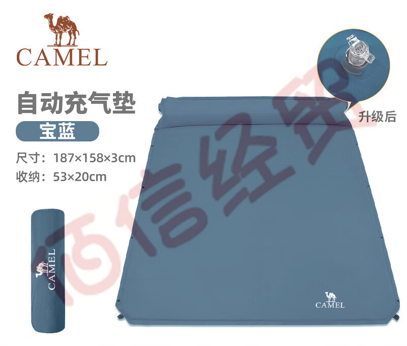 駱駝(CAMEL)戶外自動充氣墊床防潮墊加厚睡墊可坐地墊坐墊野餐墊 2103,寶藍(lán),1.88*1.58,三人 自營