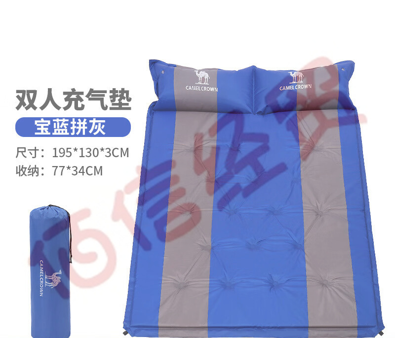 駱駝(CAMEL)戶外帶枕雙人自動充氣墊旅游野營雙人防潮墊睡墊 寶藍 195*130*3cm 自營