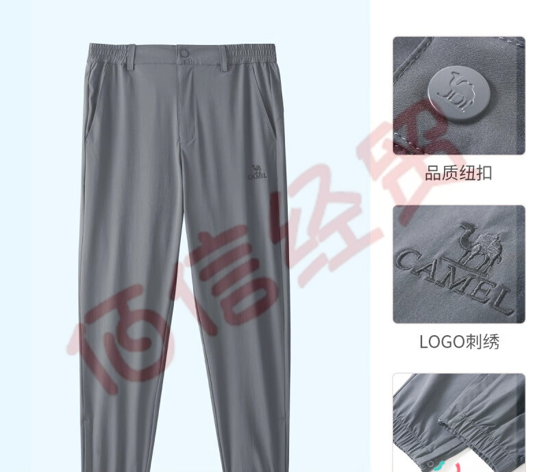 駱駝(CAMEL)休閑褲2023春夏防曬速干褲寬松顯瘦彈力束腳男戶外運動長褲 A13BA14039,墨灰,男 XL 自營