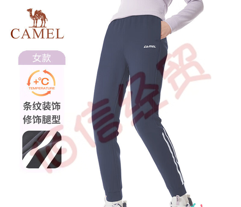 駱駝(CAMEL)運(yùn)動(dòng)褲女士休閑跑步寬松褲子百搭透氣束腳衛(wèi)褲長(zhǎng)褲女 J1W1Y6108,藏青,女 S 自營(yíng)