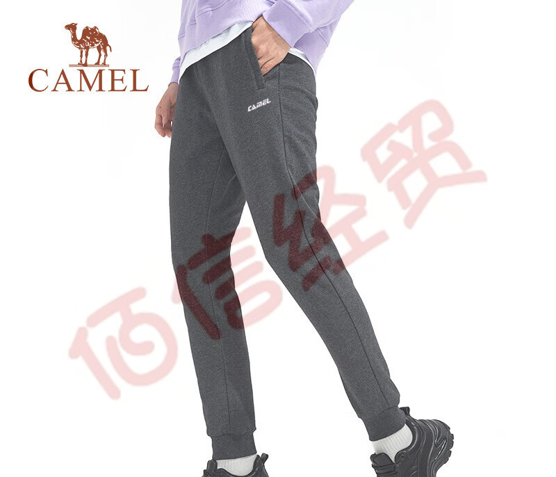 駱駝(CAMEL) 衛(wèi)褲女長褲薄款針織收口束口寬松黑色顯瘦休閑直筒運(yùn)動褲子 C1W1TF642,深麻灰,女 S 自營