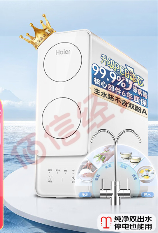 海爾(Haier) HT101-A1 水龍頭凈水器 家用凈水器 過(guò)濾器廚房臺(tái)上式 2020款升級(jí)版 白色