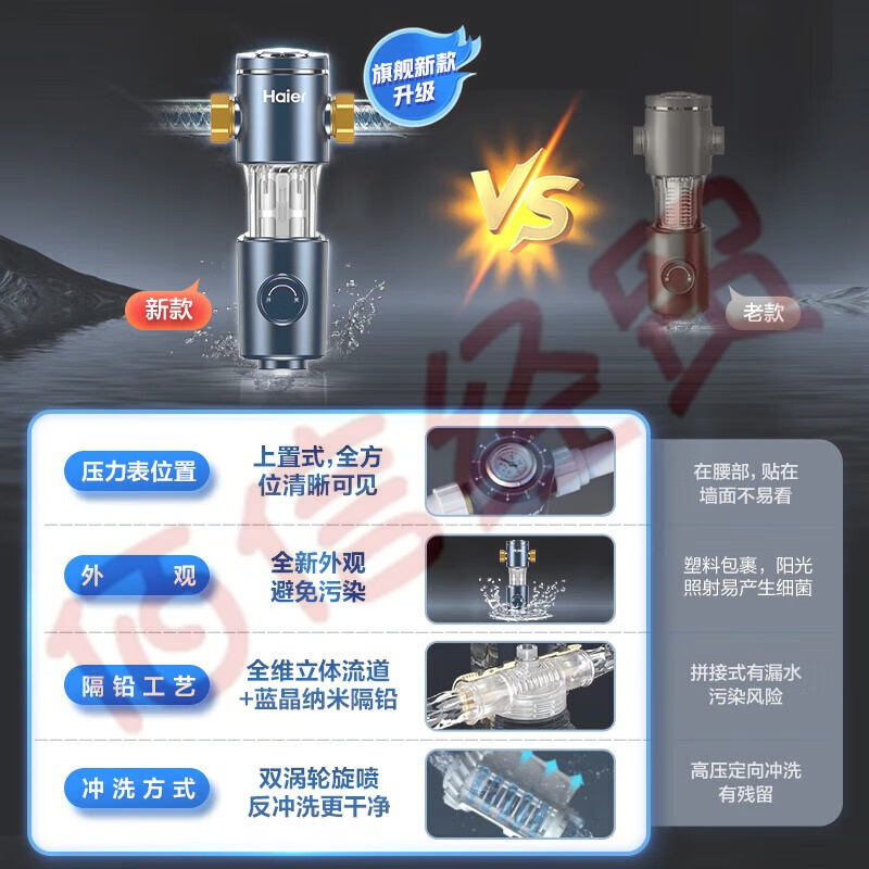 海爾(Haier)前置過濾器40微米免換芯反沖洗家用大通量凈水器全屋自來水管道 HP35旗艦升級6T雙渦輪正反沖洗 旗艦升級6T雙渦輪正反沖洗 自營