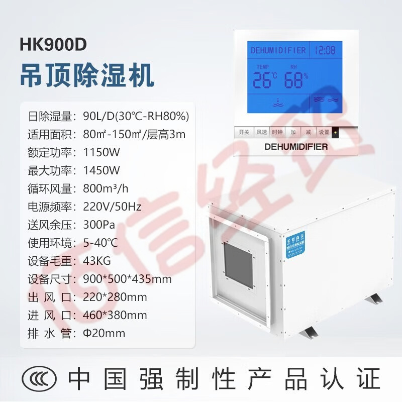 美資森美(MEIZISENMEI) 吊頂除濕機(jī)壁掛式工業(yè)中央抽濕機(jī)地下室管道除濕器吸頂式 HK900D 日除濕量90L/D 自營