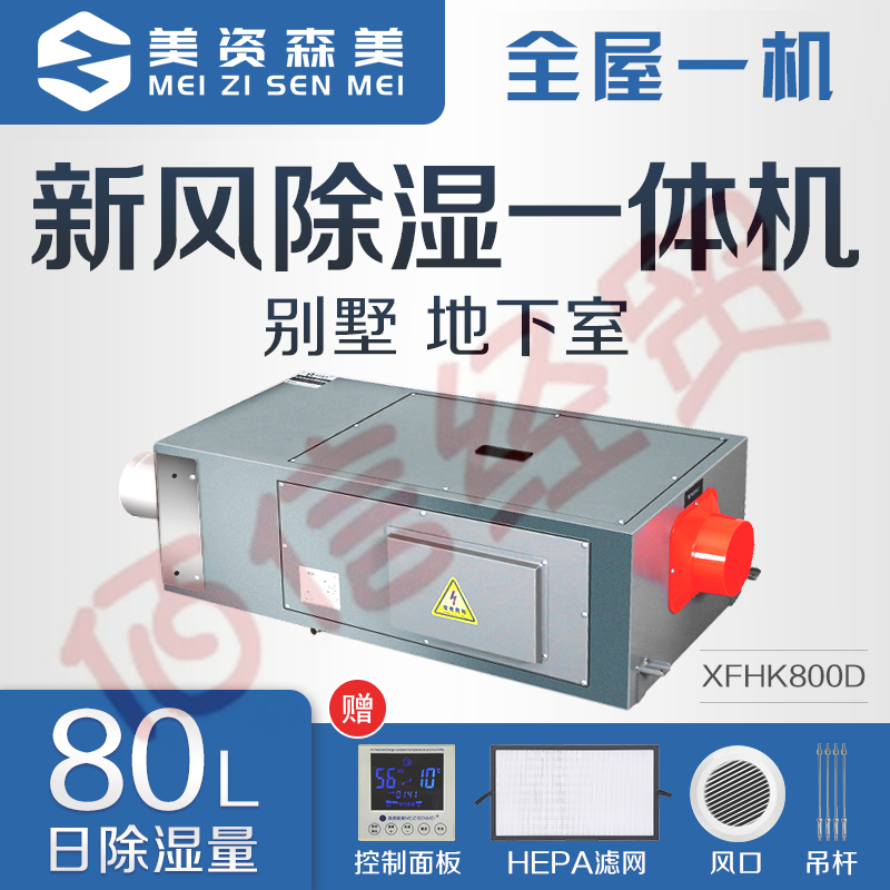 美資森美(MEIZISENMEI)新風(fēng)除濕凈化一體機(jī)吊裝式中央管道除濕機(jī)商用別墅地下室換氣隱藏安裝吊頂全屋一機(jī)單向流 XFHK800D 自營(yíng)