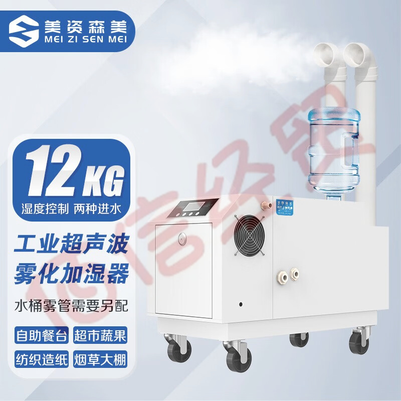 美資森美(MEIZISENMEI) 工業(yè)加濕機 消毒噴霧機 除塵火鍋店蔬菜保鮮殺菌加大功率聲波加濕器 12KG濕度控制 兩種進水 自營