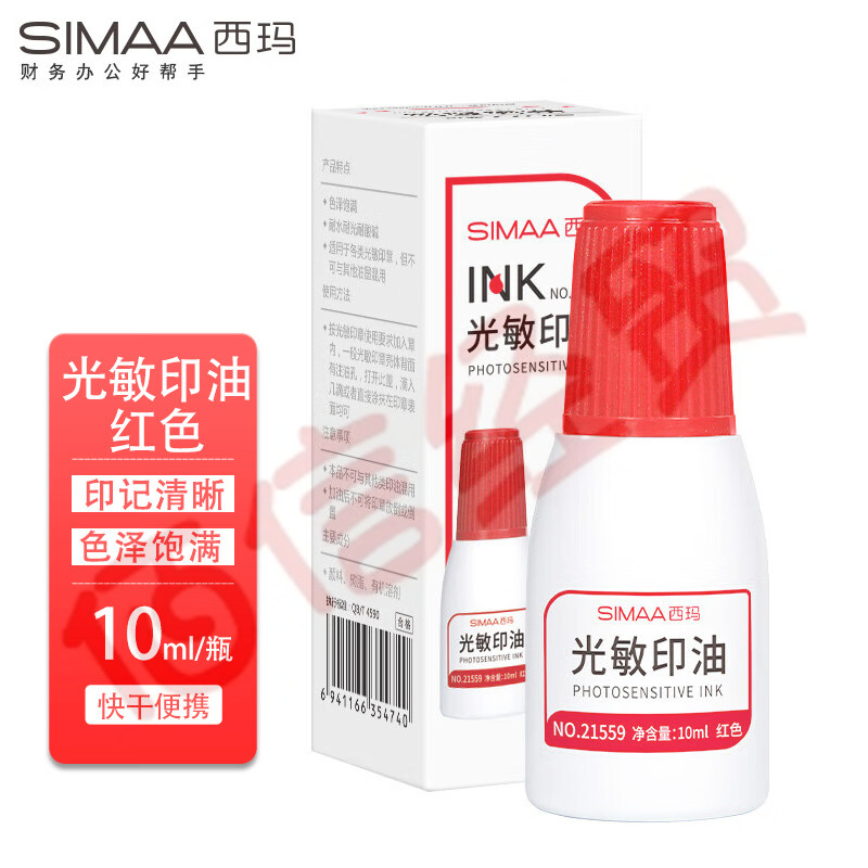 西瑪(SIMAA)10ml財務印章光敏印油 紅色印章印臺印油 財務專用 辦公用品 21559(10個起售) 自營