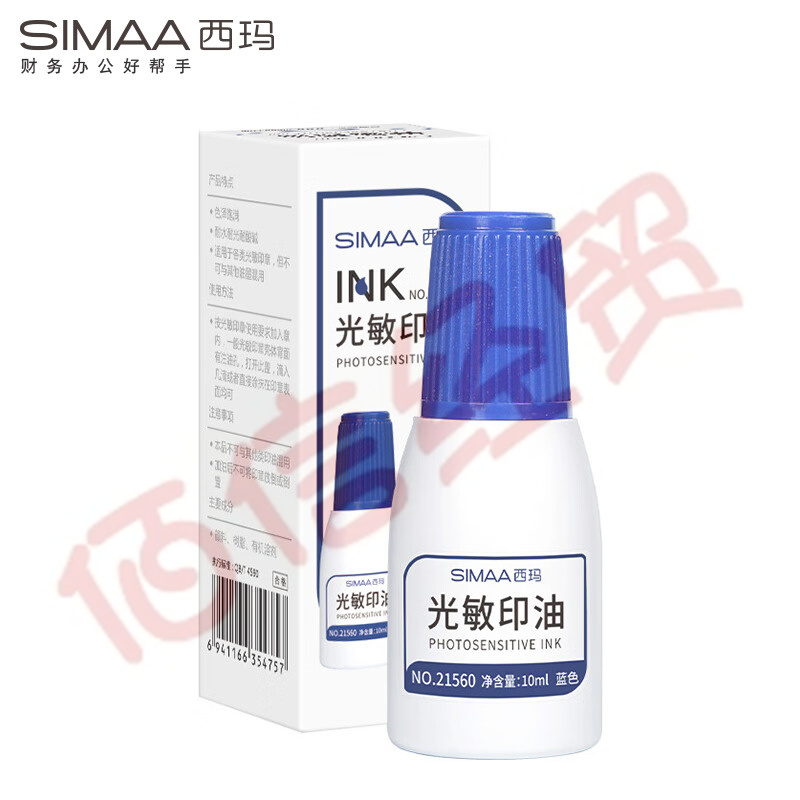 西瑪(SIMAA)10ml財(cái)務(wù)印章光敏印油 藍(lán)色 印章油印章印油 財(cái)務(wù)專用 辦公用品 21560(10個(gè)起售) 自營