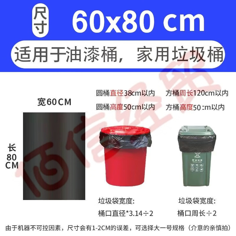 乙晨合垃圾袋手提式背心式平口式扣手式超強韌性全新材質(zhì) 平口式60*80cm加厚款50只(5個起售) 自營