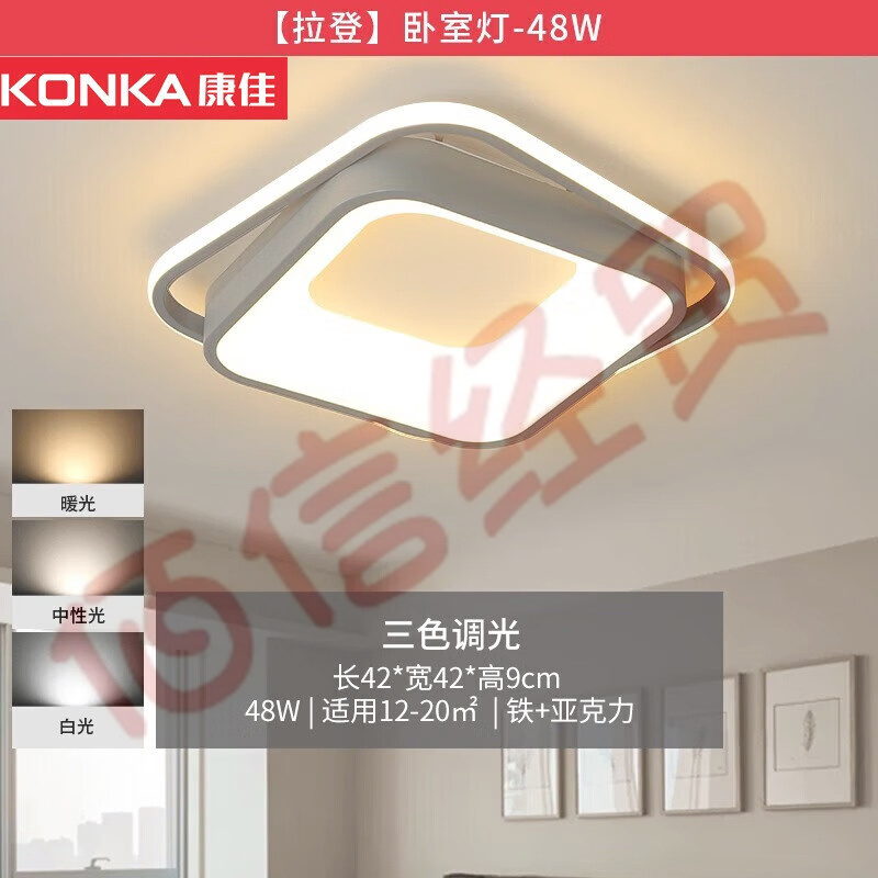 康佳(KONKA)LED吸頂燈客廳大燈臥室書(shū)房全屋燈具套餐【拉登】48瓦-三色調(diào)光 48瓦-三色調(diào)光方臥室燈 自營(yíng)