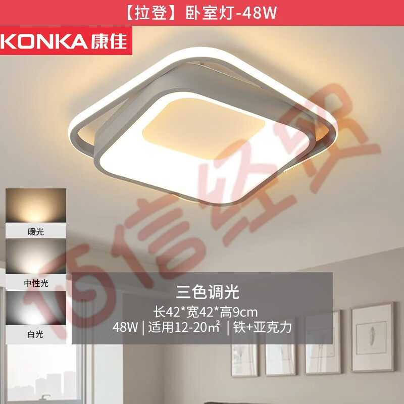 康佳(KONKA)客廳LED吸頂燈北歐現(xiàn)代客廳餐廳燈飾客廳線條燈具全屋套餐 拉登 48瓦-三色調(diào)光方臥室燈 自營