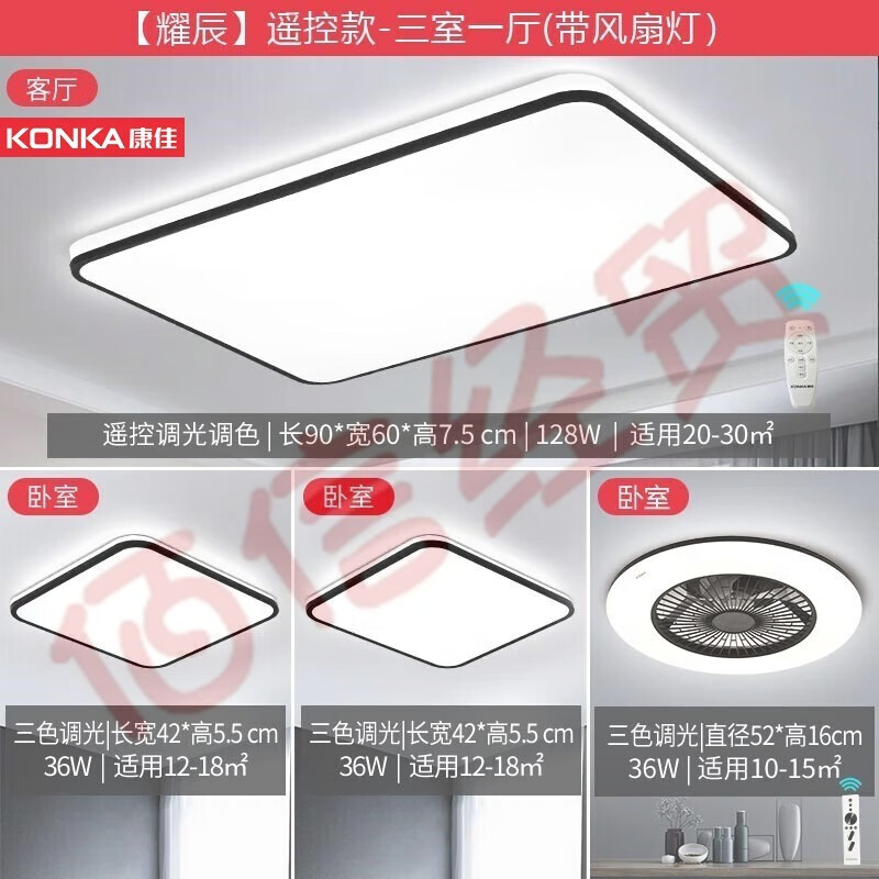 康佳(KONKA)客廳燈LED吸頂燈客廳臥室書(shū)房餐廳燈超薄燈飾北歐現(xiàn)代燈具 耀晨 【耀辰】三室一廳(帶風(fēng)扇) 自營(yíng)