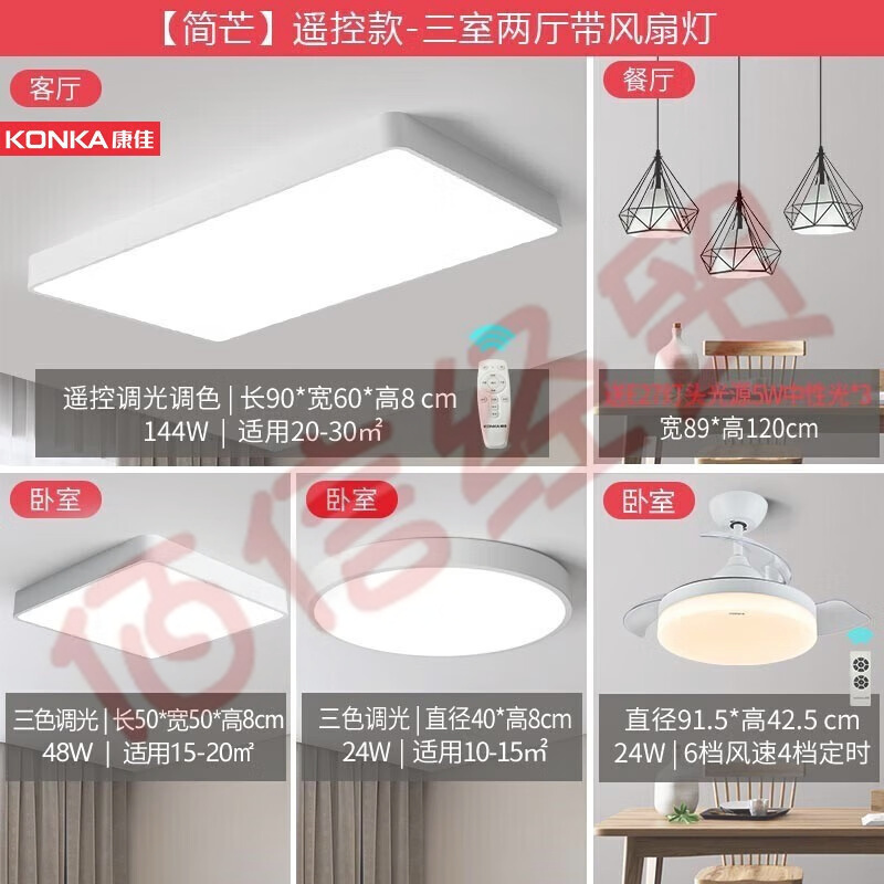 康佳(KONKA)吸頂燈簡(jiǎn)約大氣客廳餐廳臥室燈飾全屋組合燈具套餐 【簡(jiǎn)芒】三室二廳(帶風(fēng)扇) 自營