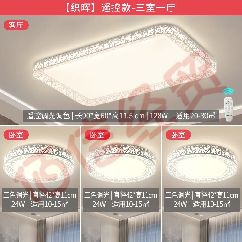 康佳(KONKA)客廳LED吸頂燈臥室書房燈簡約中式風鳥巢燈具全屋套餐 織暉 【織暉】三室一廳 自營