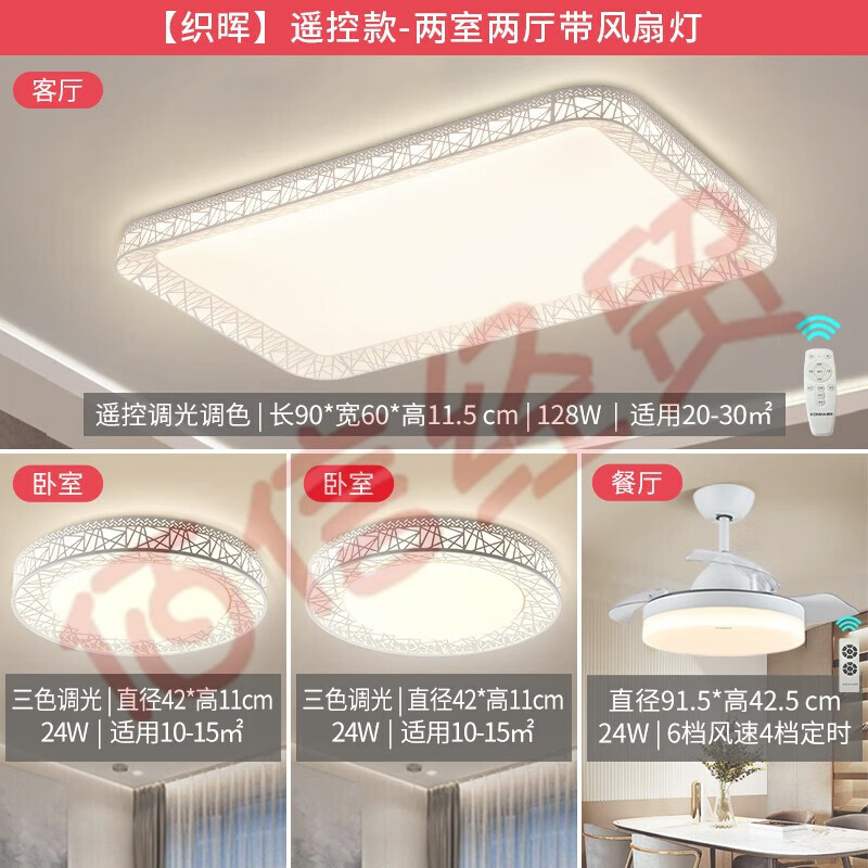 康佳(KONKA)吸頂燈鋁材大氣燈飾客廳臥室餐廳書房飯廳現(xiàn)代茶室別墅 【織暉】兩室兩廳帶風(fēng)扇 自營