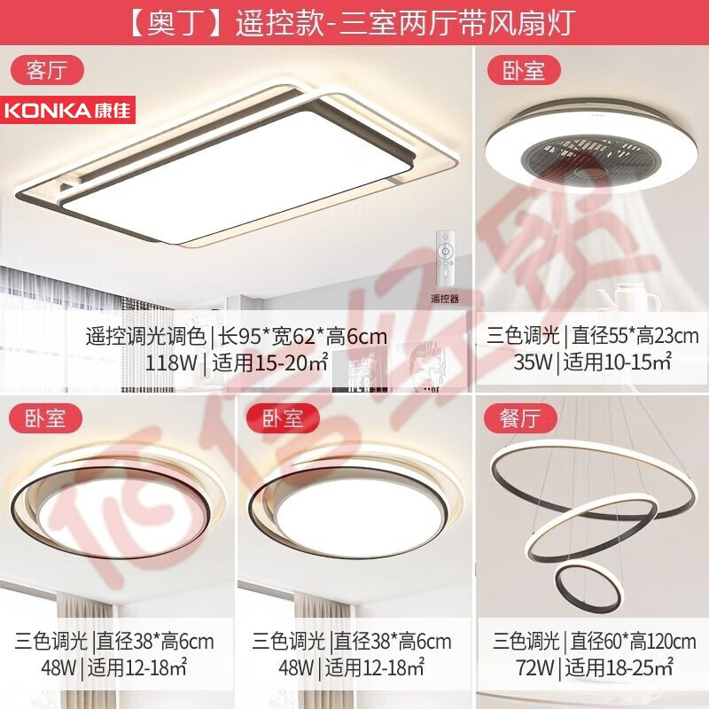康佳(KONKA)吸頂燈后現代高端超薄客廳臥室餐廳燈具燈飾全屋套餐 奧丁 【奧丁】三室二廳(帶鳳扇) 自營