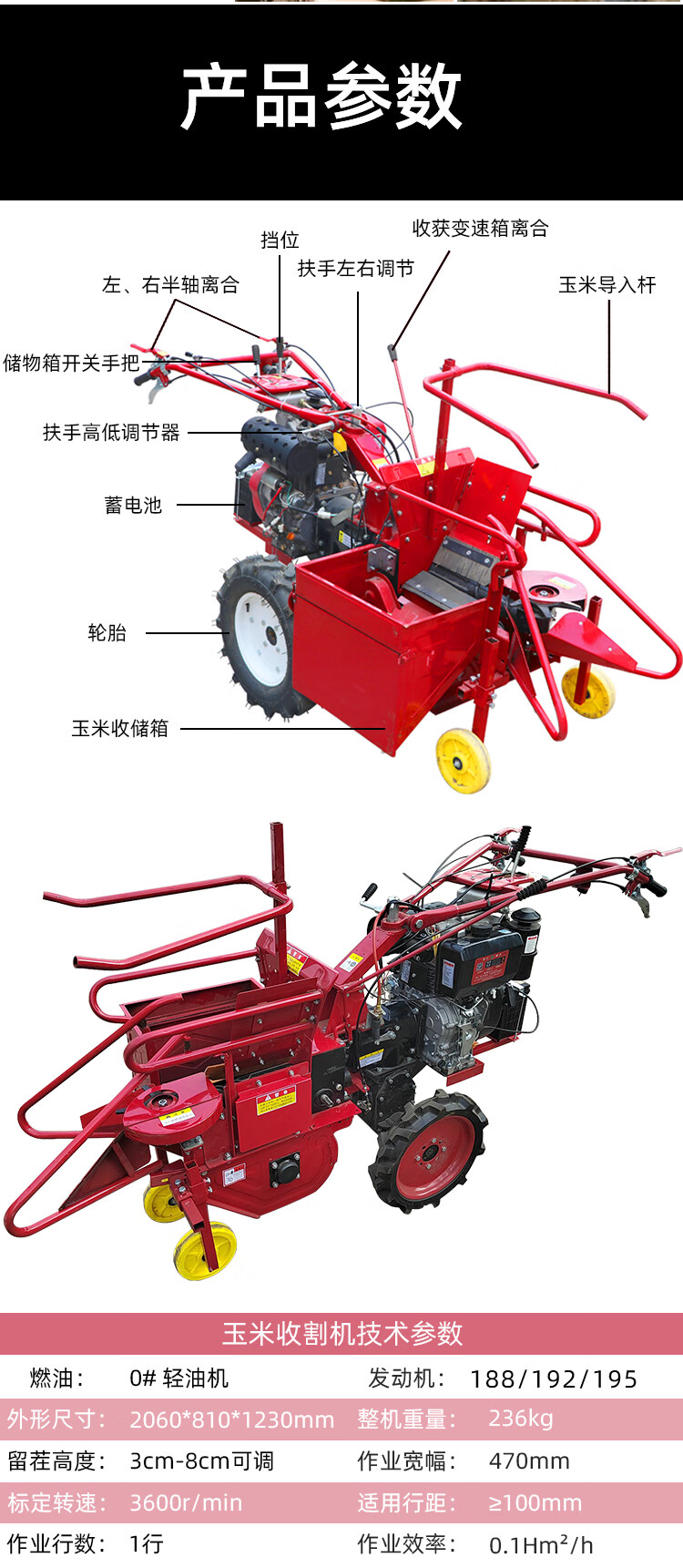 利晨 單行玉米收割機小型收玉米機器神器玉米聯(lián)合收獲機摘苞米機玉米稈粉碎秸稈還田一體機 195柴油齒輪款 自營