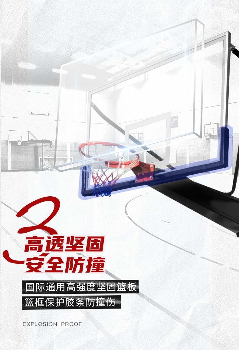 健倫(JEEANLEAN)JLGAA61 籃球架 成人訓(xùn)練比賽標(biāo)準(zhǔn)電動(dòng)液壓籃球架(含防撞包)