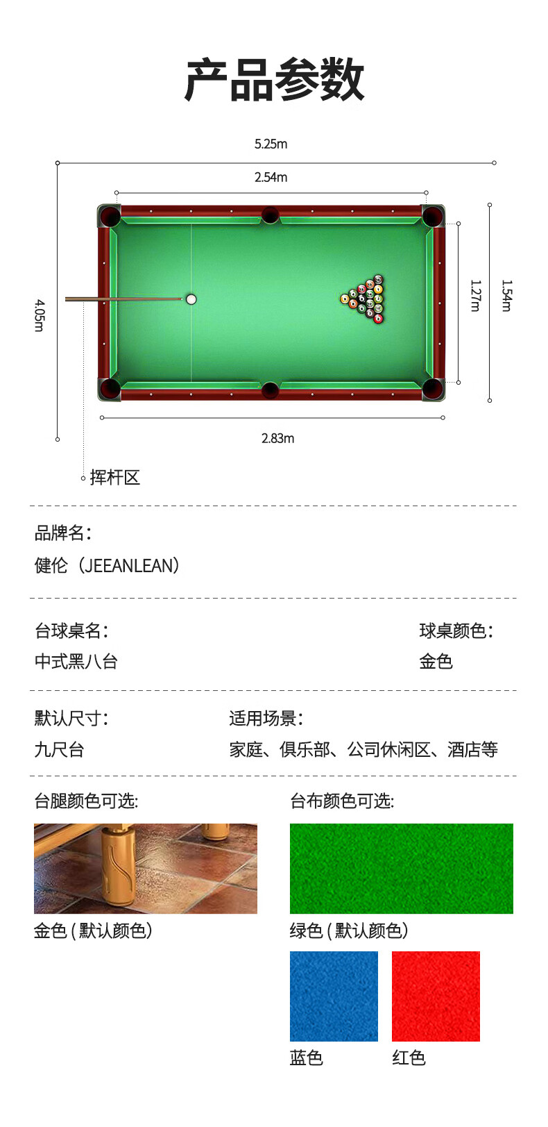 健倫(JEEANLEAN)JLAB127臺(tái)球桌標(biāo)準(zhǔn) 旋風(fēng)腿 8球黑八臺(tái)球桌 高質(zhì)量采購(gòu)服務(wù)款 自營(yíng)