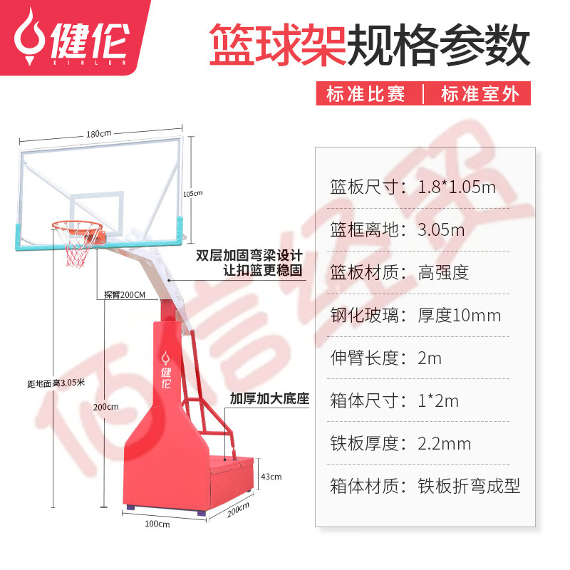 健倫(JEEANLEAN)JLAA160籃球架 標(biāo)準(zhǔn)成人戶外移動 三色仿液壓籃球架/單只 自營