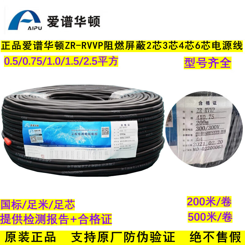 愛譜華頓ZR-RVVP屏蔽2芯3芯4芯6芯0.5/0.75/1.0/1.5國標(biāo)電源線 ZR-RVVP2*1.0 自營
