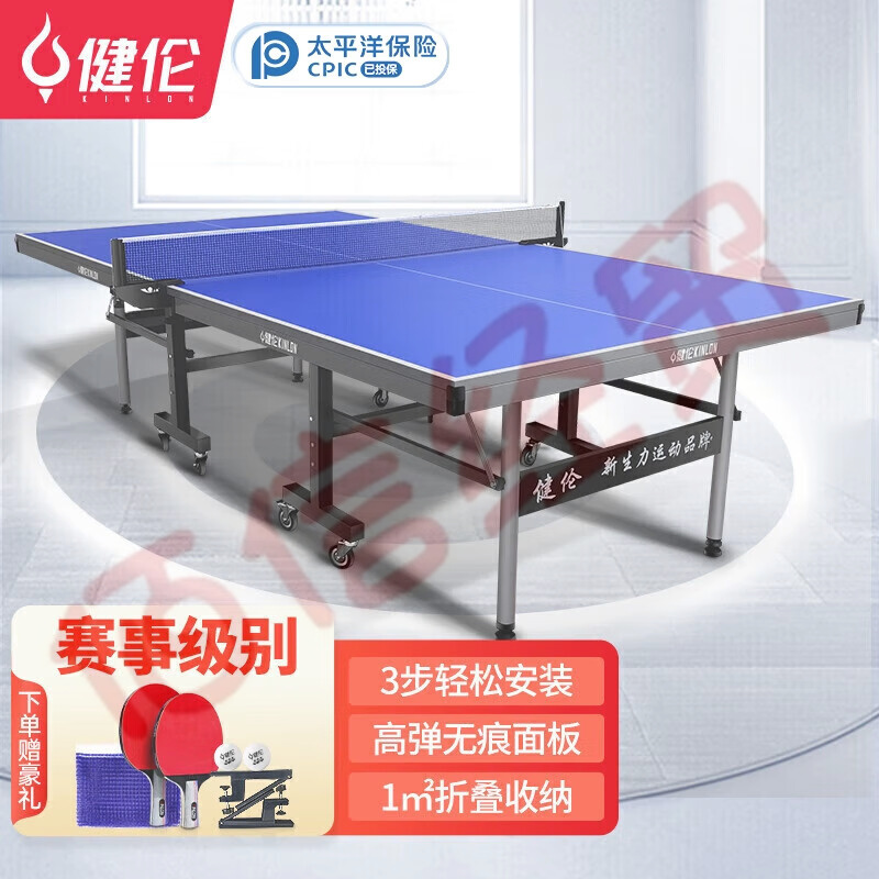 健倫室內家用帶輪可折疊移動標準乒乓球桌25MM賽事級乒乓球臺JL395 自營