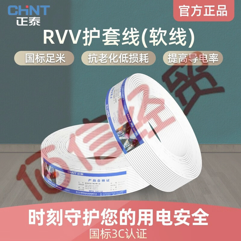 正泰(CHNT) 電線電纜二芯軟護(hù)套線RVV2*2.5/1.5/0.75/1/4平方線 2*4(100米) 自營(yíng)