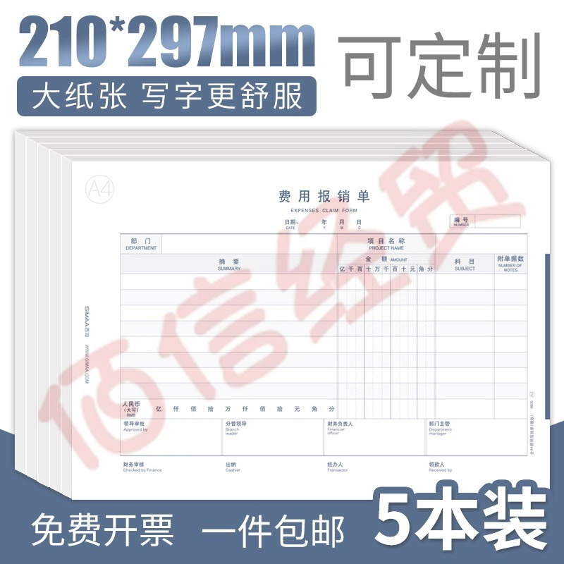 西瑪(SIMAA)全A4-費用報銷單210*297mm--8805--50張/本 5本/包 12包/箱(單包價-整箱售-拍12組) 自營