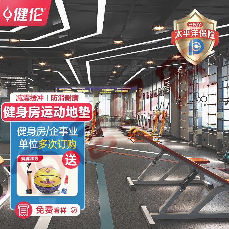 健倫健身房橡膠地墊 力量區(qū)防砸減震隔音地墊 平底款100*100*2.5CM 自營(yíng)