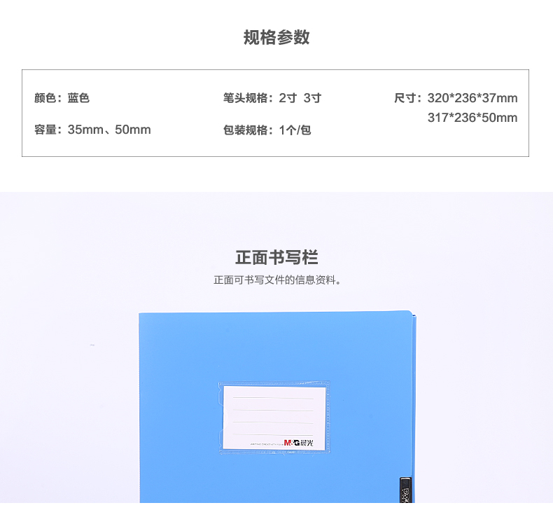 晨光文具經(jīng)濟型資料盒收納盒文件夾大容量辦公 藍(lán)色94814-55mm檔案盒一個 自營