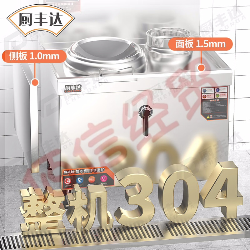 廚豐達 商用電磁爐大鍋灶食堂電磁灶大功率炒菜灶臺飯店酒店學校廚房凹面 304雙頭單尾15kw*2 自營