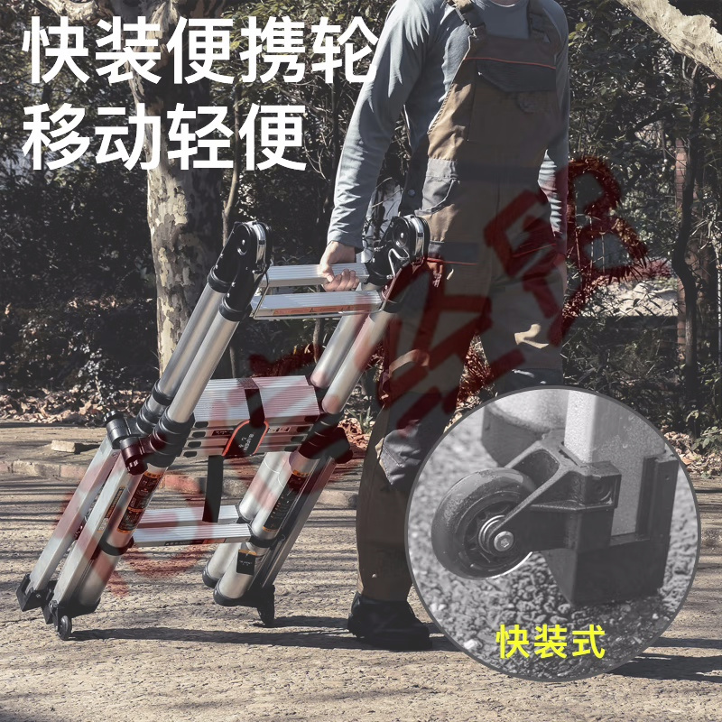 巴芬 德國品牌伸縮梯子家用人字梯加厚鋁合金便攜工程折疊多功能樓梯 【穩(wěn)固防晃旗艦款】人字梯3.9米 自營
