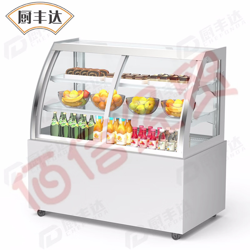 廚豐達(dá) 蛋糕展示柜 冷藏保鮮柜商用水果飲料熟食甜品壽司玻璃西點(diǎn)冰柜風(fēng)冷 弧形前開門+1.8米防霧(其它型號咨詢客服) 自營
