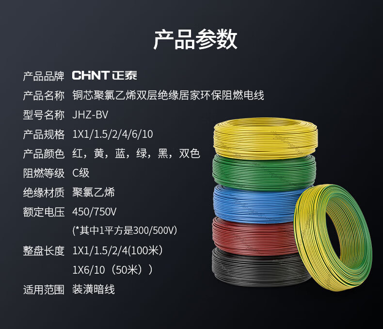 正泰(CHNT)電線電纜JHZ-BV10平方50米雙層絕緣環(huán)保阻燃國(guó)標(biāo)家裝銅芯硬線(其它型號(hào)咨詢客服) 自營(yíng)