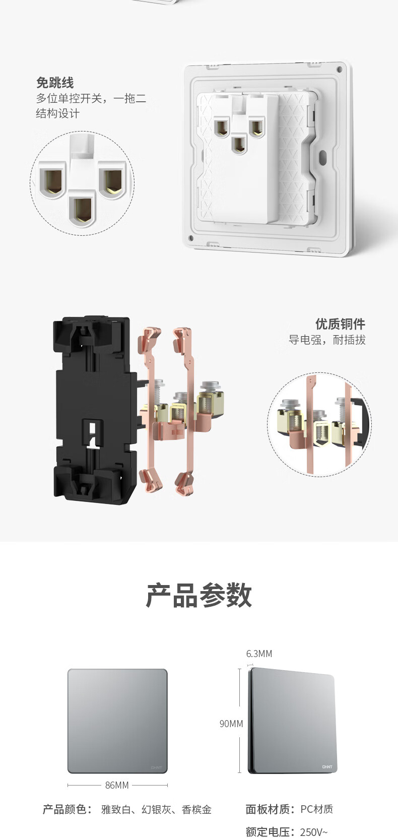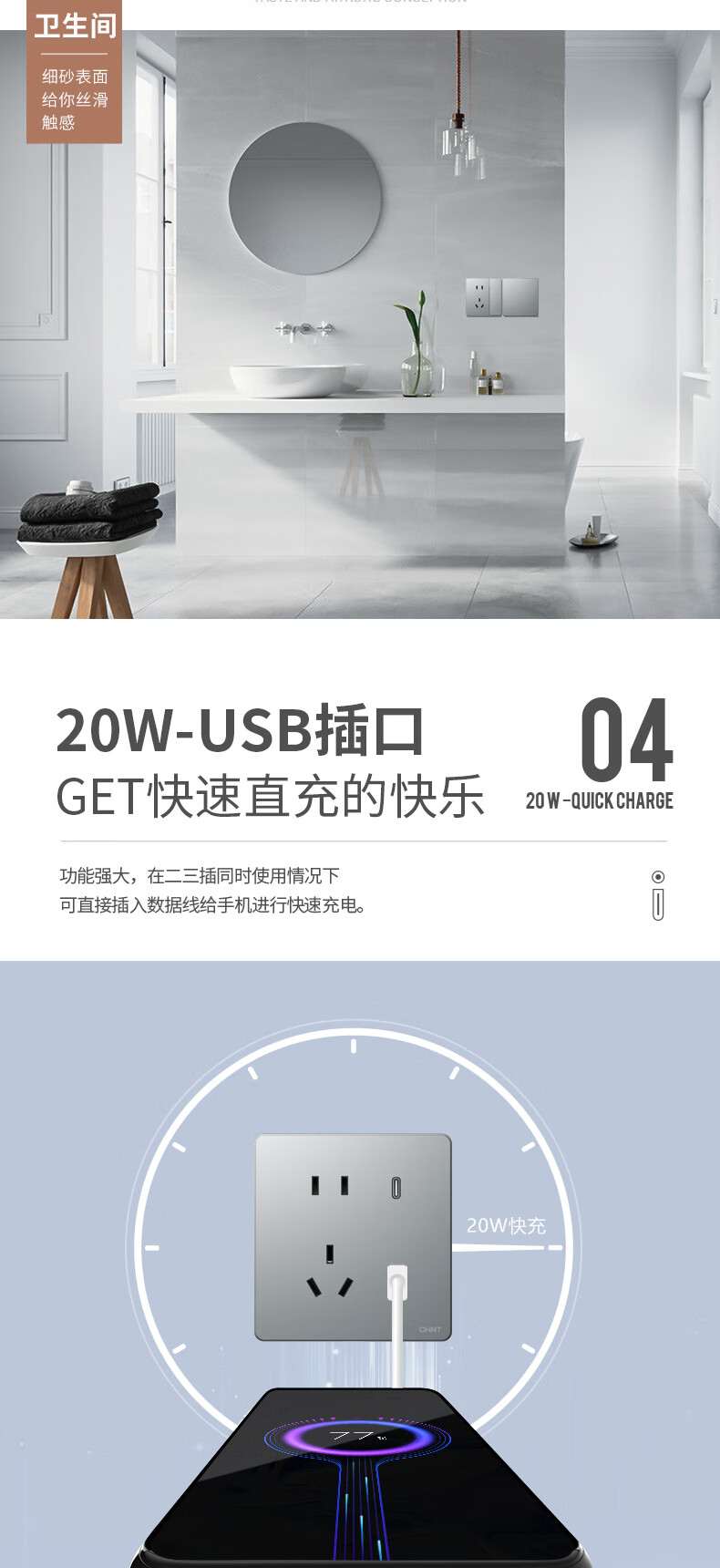 正泰開關(guān)插座面板3L超薄啞光磨砂5孔插座正五孔插座暗裝幻銀灰10只裝(其它型號咨詢客服) 自營